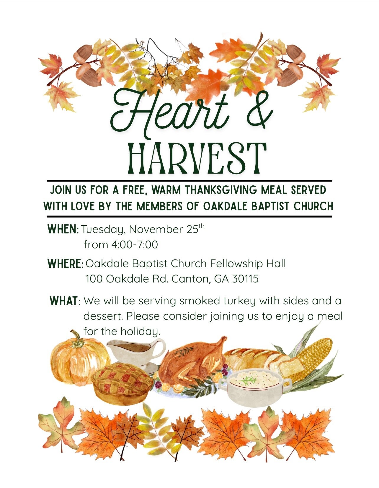 Join us for a free, warm Thanksgiving meal served with love by the the members of Oakdale Baptist Church.